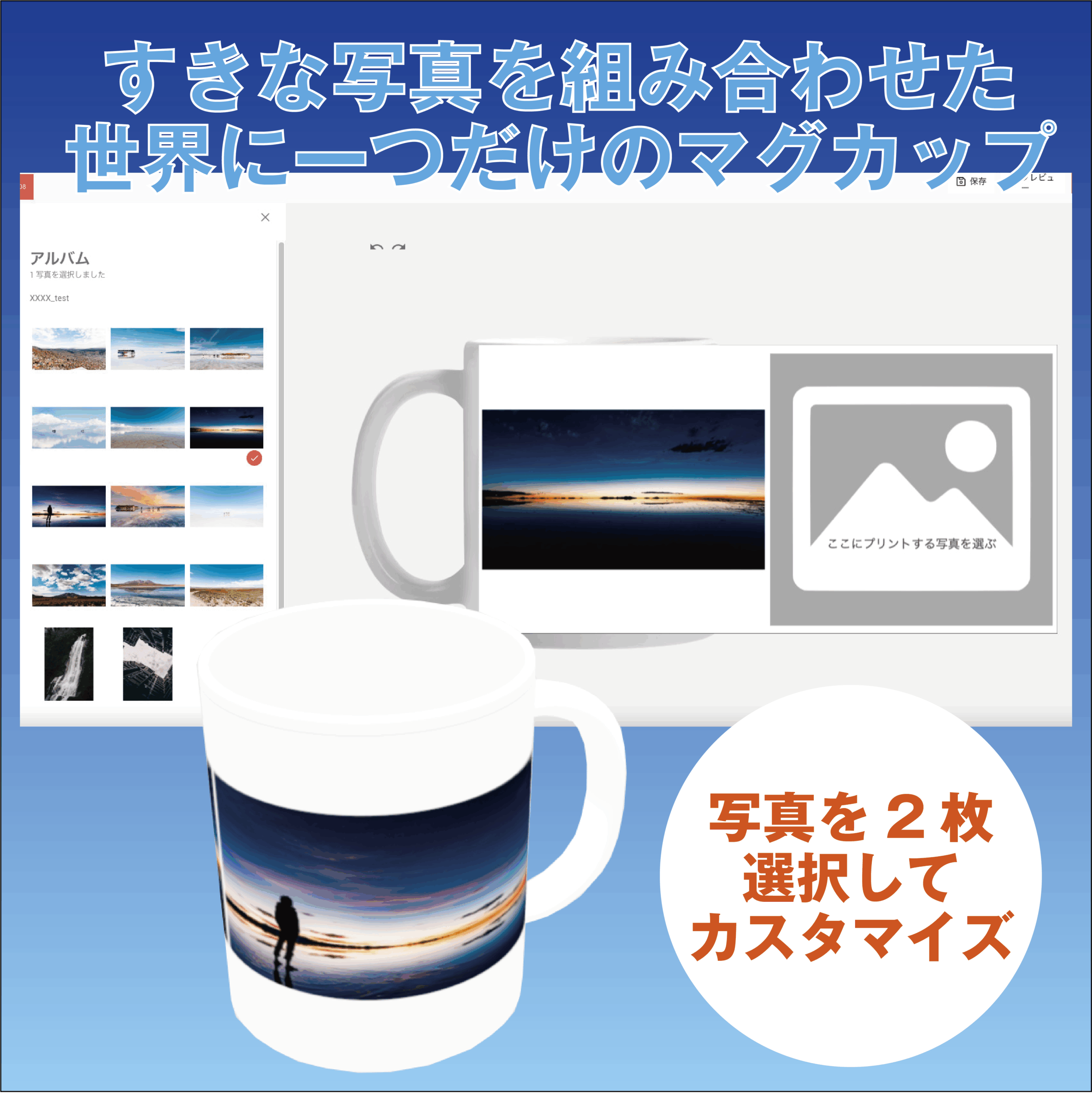 好きな世界の風景写真を2枚選んでプリントできるあなただけのオリジナルマグカップです