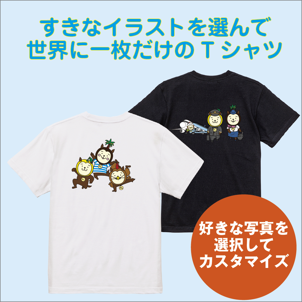 すきな色と自分のサイズのTシャツに好きなイラストを背中にプリントして世界に一枚のTシャツを楽しもう!
