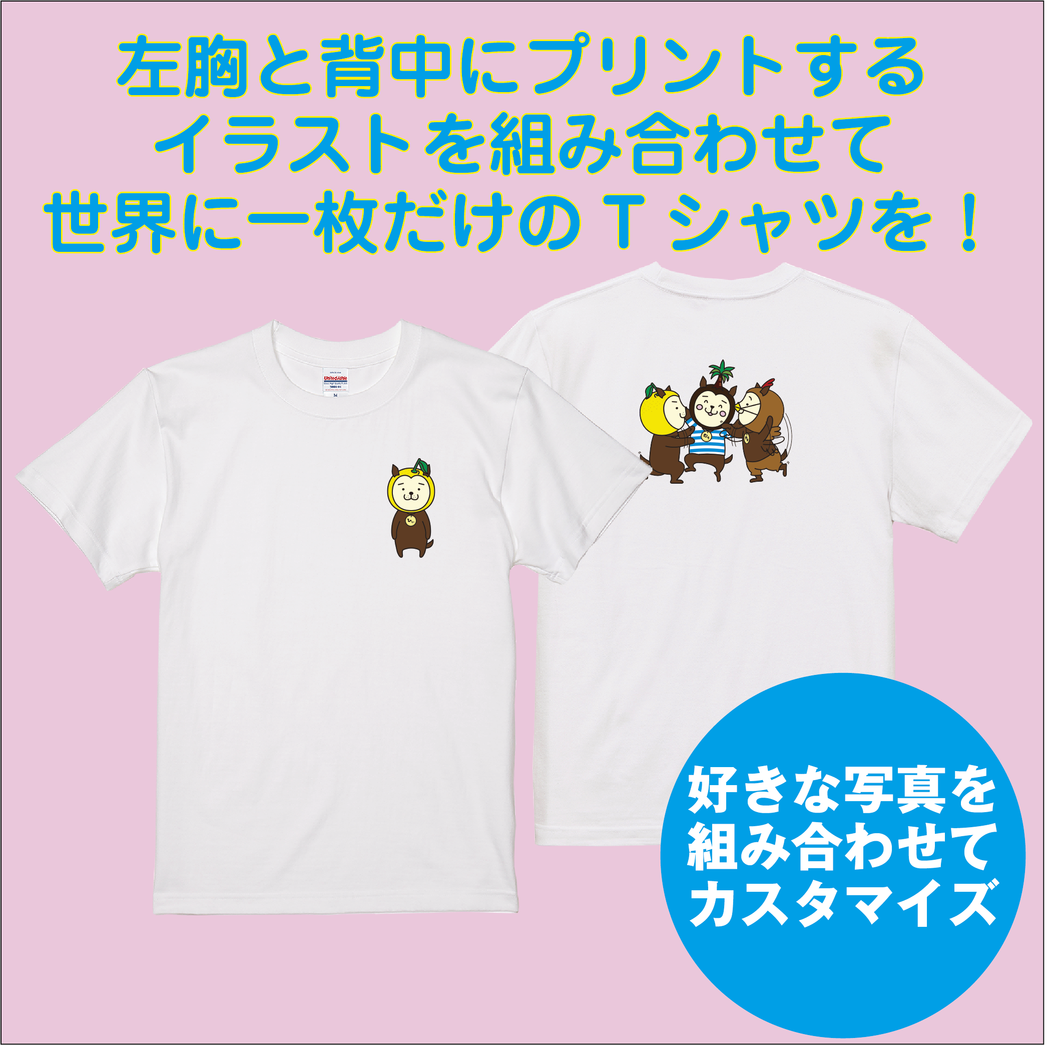 好きなイラストを左胸と背中に組み合わせてプリントして「世界に一枚のTシャツ」を楽しもう!